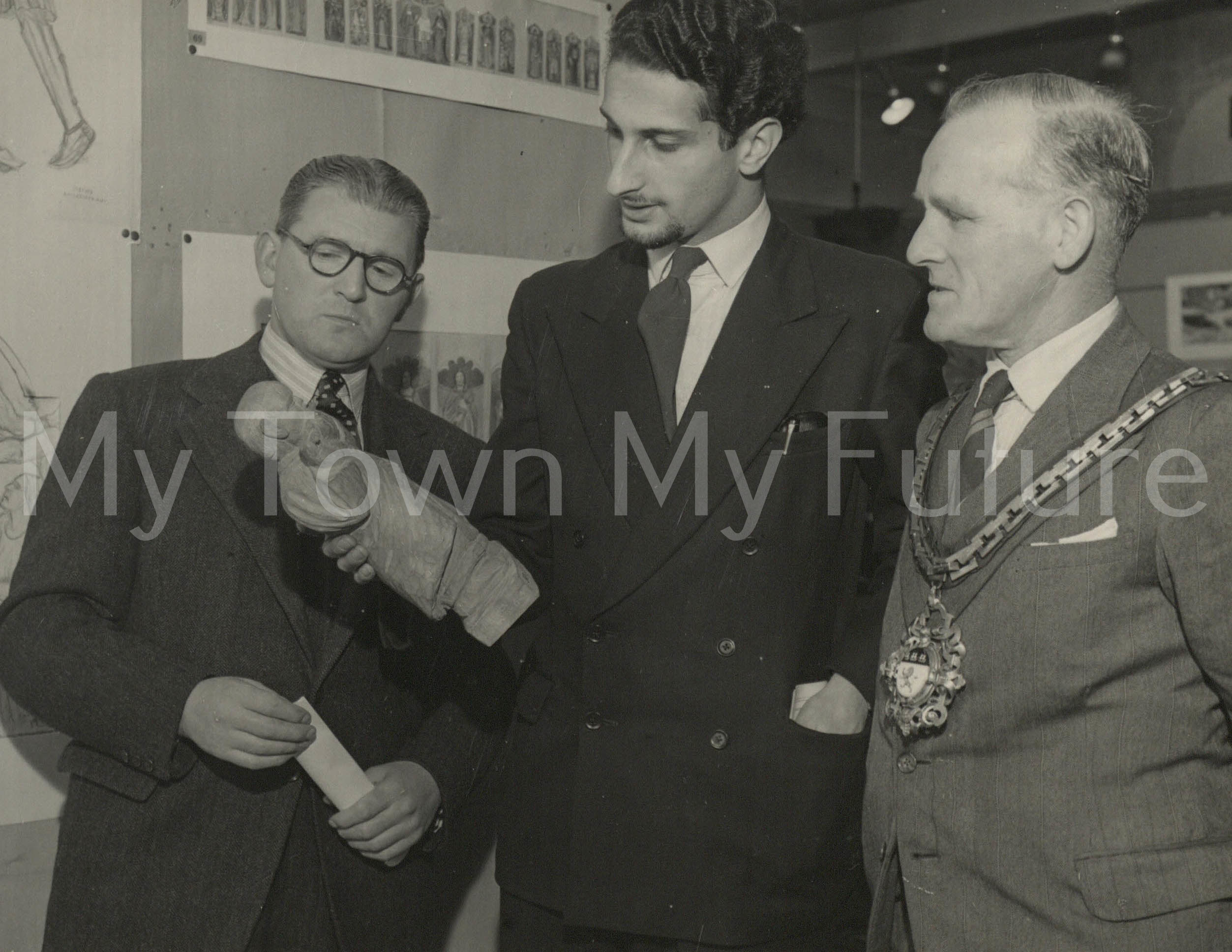 Mr M Shepherd (Boro Librarian) – Ald Taylor _15th September 1952 – John Hen (Artists Son) and Ald Slater)
