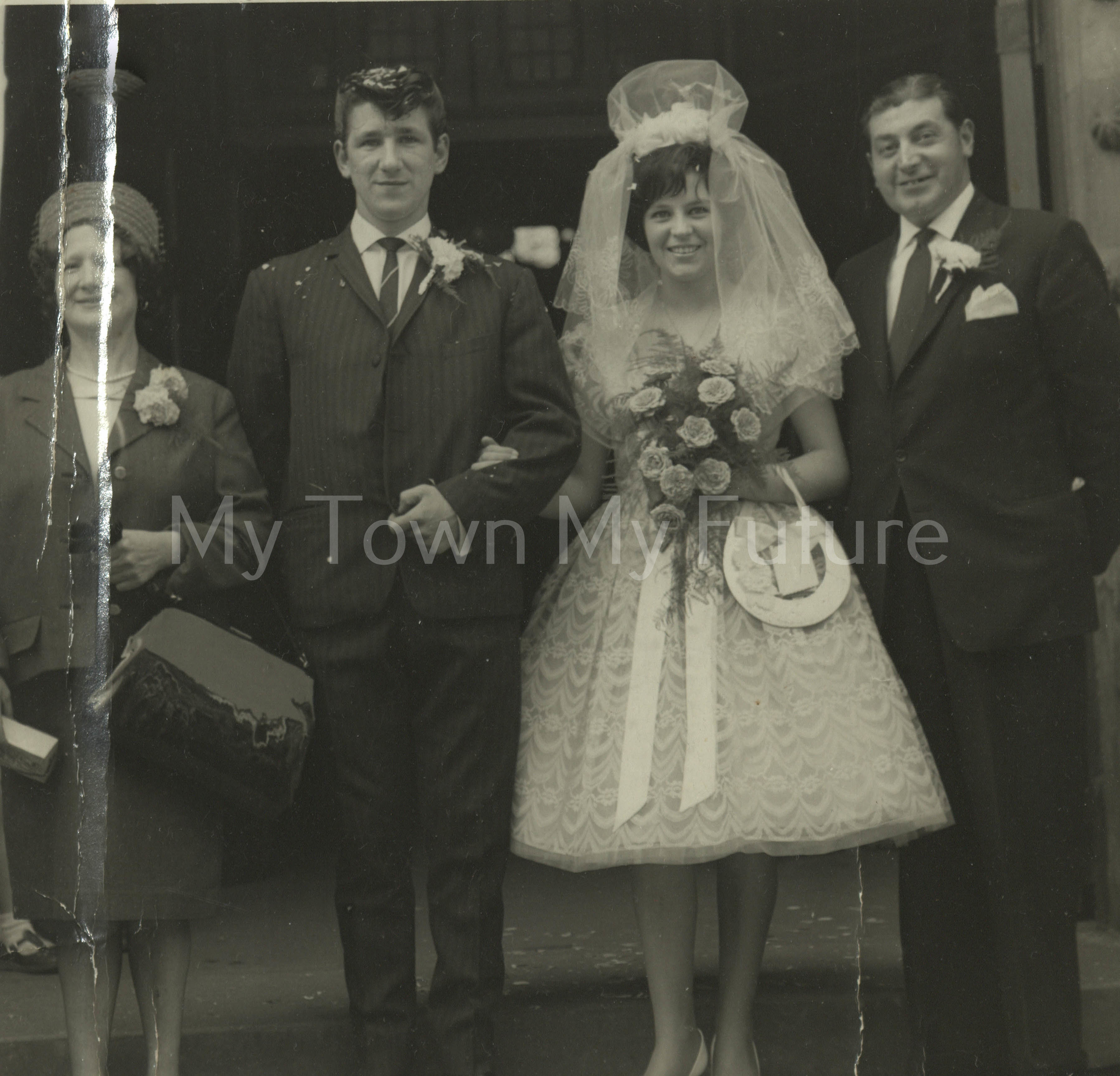 Bridegroom’s mother, Margaret Robinson; groom, Kenneth Robinson, and the bride, Christine Robinson (née Yafano); grandfather, Giovanni Yafano, bride’s father.